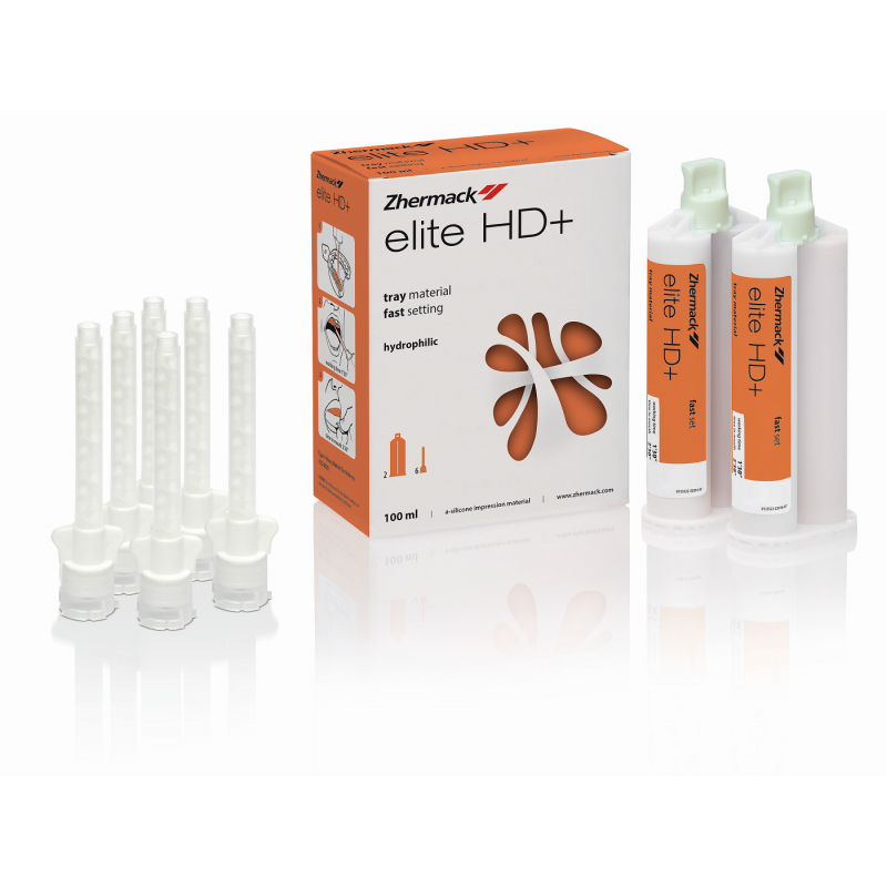 Elite HD+ Tray Material (ratios de mélange de 1:1 et 5:1) est un polyvinylsiloxane à haute viscosité recommandé pour la technique en deux étapes (double empreinte) en association avec Elite HD+ Light Body ou Elite HD+ Super Light Body, ou la technique en une étape (simultanée) en association avec Elite HD+ Regular Body ou Elite HD+ Light Body.