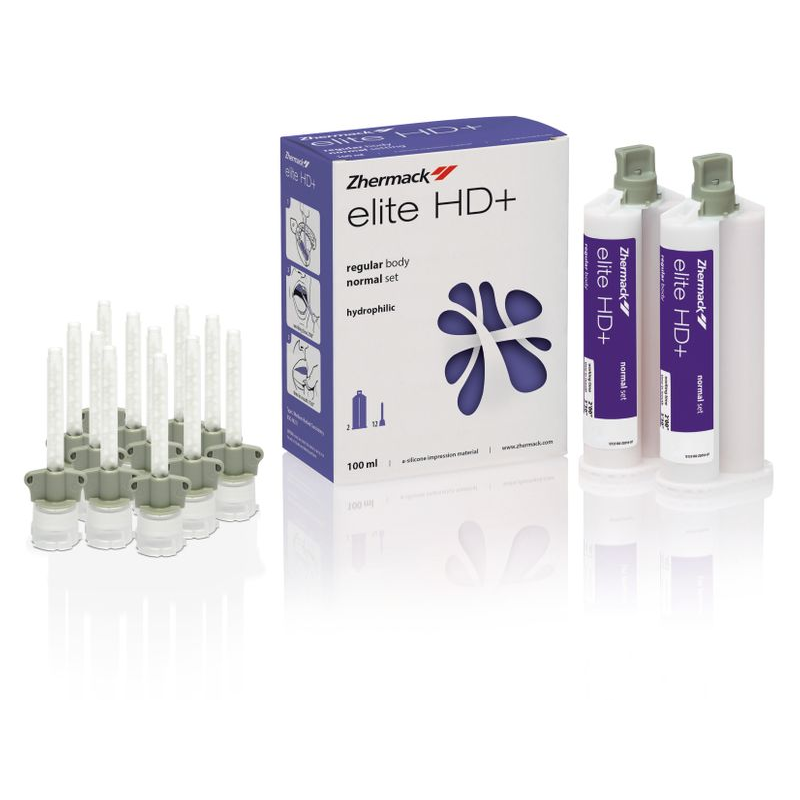 Elite HD+ Regular Body (ratio de mélange de 1:1) est un polyvinylsiloxane à viscosité moyenne recommandé pour la technique en une étape (simultanée) en association avec Elite HD+ Putty Soft ou Elite HD+ Tray Material.
